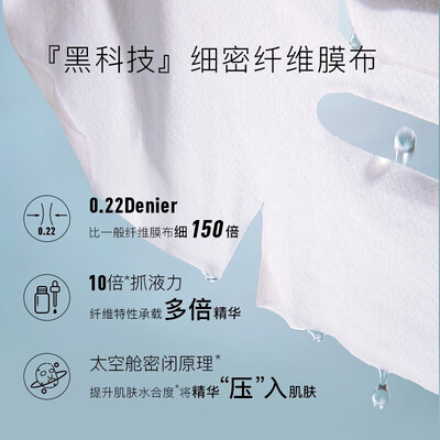 采用细密纤维膜布,其纤维比一般纤维膜布细150倍,同时抓液力提升10倍,可承载更多精华,密集滋润。