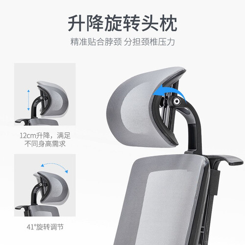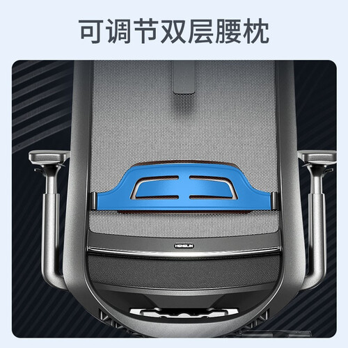 可调节双层腰枕,依靠服帖腰部曲线,护脊又护腰,显著减少了腰部压力。3D工学扶手,肘部支撑稳定,高低可以根据需求自由调节。