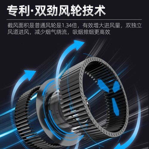上下双进风设计,增加吸烟面积,下风口更接近烟源,让油烟无处可逃。专利智旋干洗,轻松甩掉油污,保持持久大吸力。
