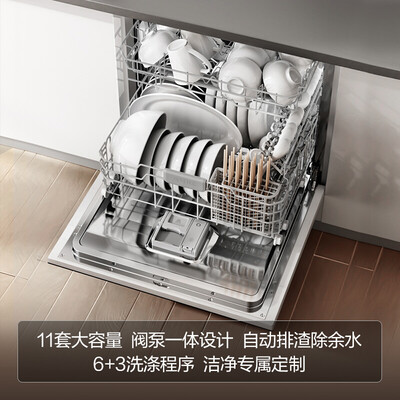 这款洗碗机拥有非常大的容量,可以存放11套餐具,能够满足大家庭需要。使用6加3道洗涤程序,保证洗涤干净。