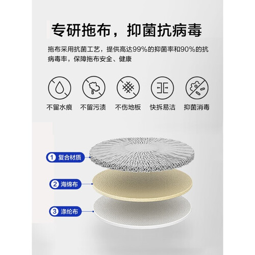 配置大扭矩和大功率电机,有效增强抓地力和摩擦力,强力清楚顽固污渍。智能无线设计,单手轻拖省时省力,老人小孩轻松掌控。
