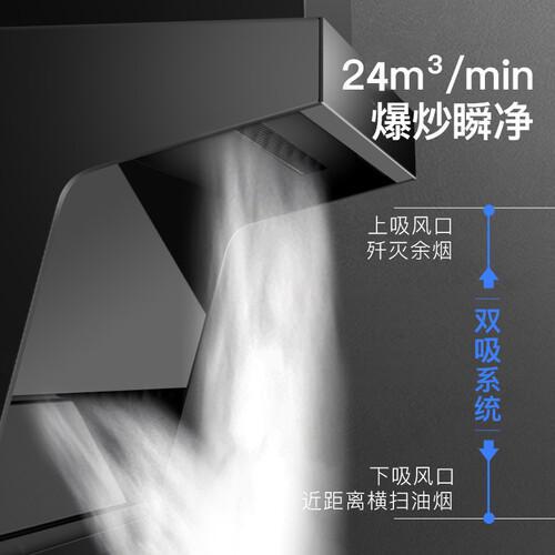 红外手势感应设计,挥手即启动,方便快捷,零触碰调挡。搭配顶侧双吸直排,上下配合,让油烟无处可逃,带妆下厨也不怕。