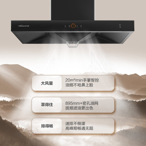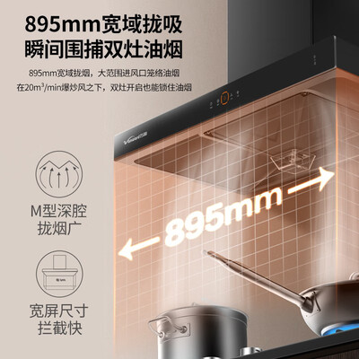 宽域拢烟结构处理,四面八方聚拢油烟,排烟效果提升。时尚媚黑风格的机身外观,带来更好的装饰性能,匹配不同家居环境。