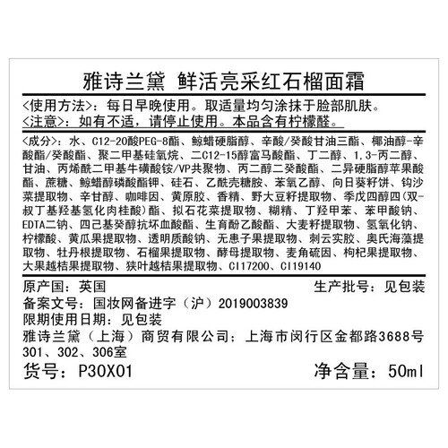 雅诗兰黛鲜活亮采红石榴乳液面霜