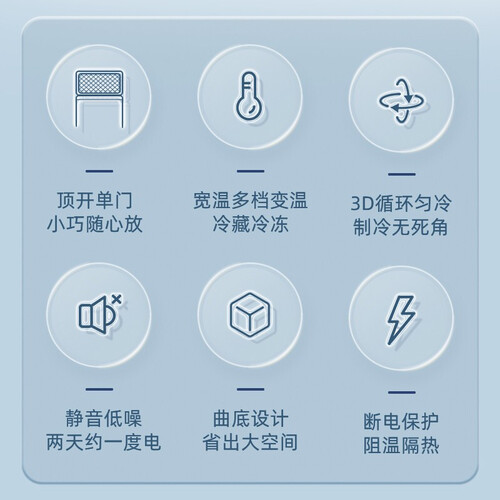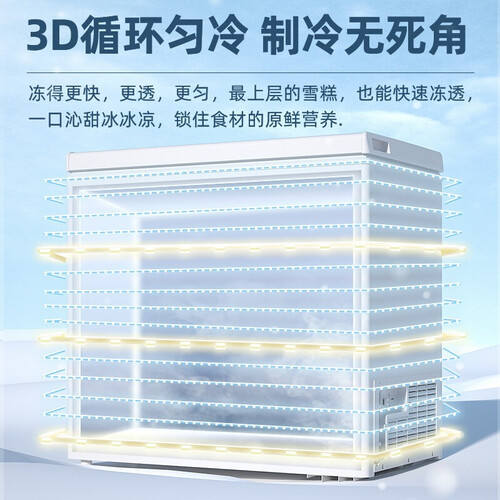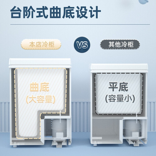 采用台阶式曲底设计,容量更大,轻松囤下更多食材。断电保护,层层防护,紧锁冷气,无需担心食材变质,给足安全感。