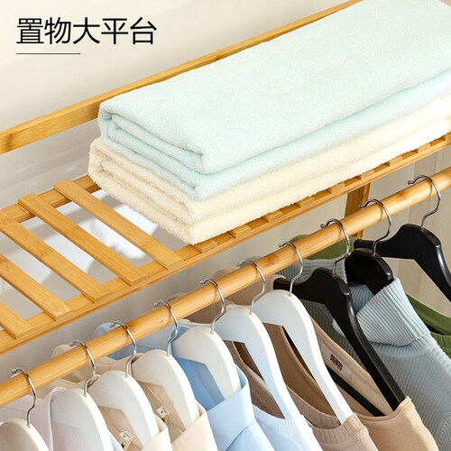木马人多层简易衣帽架采用健康楠竹材质制成,环保清新更坚韧。衣帽架分类合理,方便我们的日常拿取,顶部设置置物大平台。