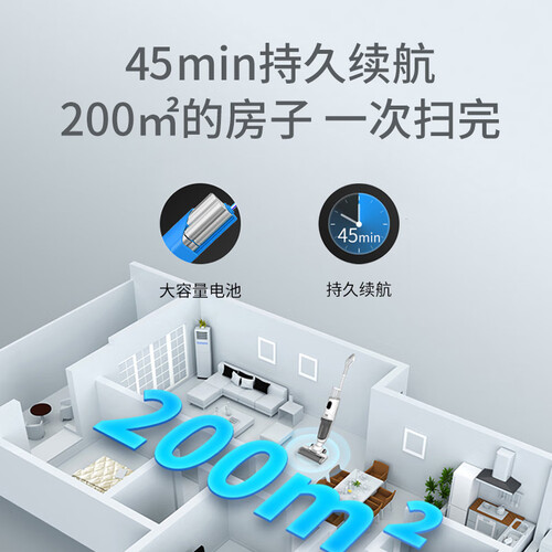 搭载50分钟持久续航,一次充电,轻松搞定大户型。5500Pa强劲大吸力,微尘毛发和干湿垃圾都能一网打尽。