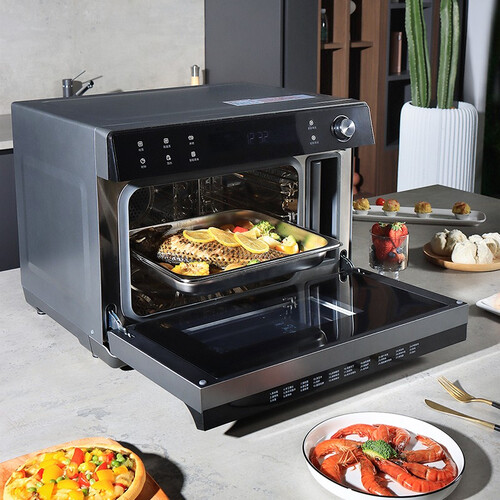 智能温度显示屏幕,方便根据食材调整蒸烤温度,让口感得到提升。高温自清洁技术,通过高温溶解油污,用抹布擦拭干净。