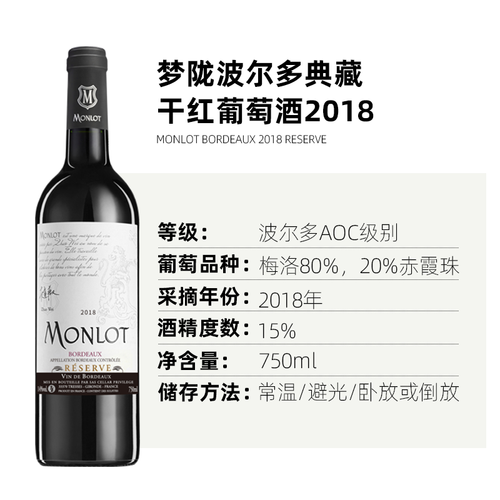 采用80%的梅洛和20%的赤霞珠,用传统方式酿造,酒体呈现宝石红色。15°的酒精度数,适合多人群饮用。