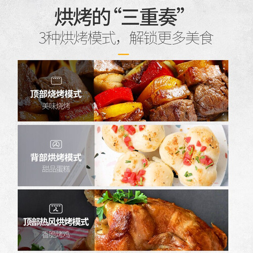 具有八种烘烤模式,助你快速烘烤各种美食,选择多样化减少限制。采用上下独立控温设计,均匀稳定烘烤食物,美味更爽口。