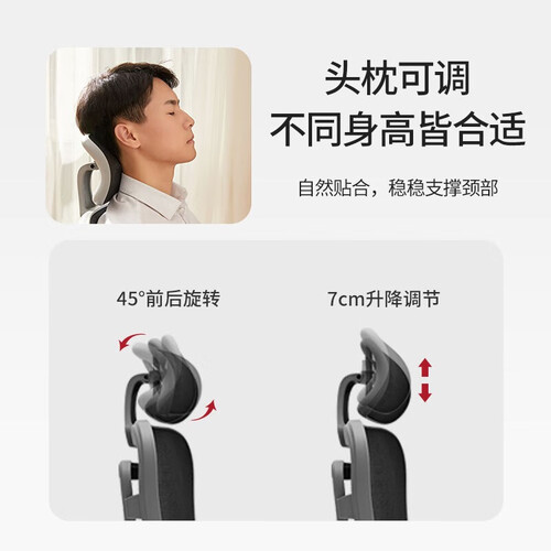 拥有独立3D护腰设计,呵护腰部关机,久战游戏告别腰部酸痛感。搭配头部支持,满足午间小憩需求,下午也能活力满满。