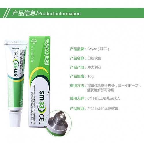 拜耳口腔软膏,无色无味涂在患处即可,帮助维护口腔健康。成分安全有效,无副作用,6个月以上的婴儿也能使用。
