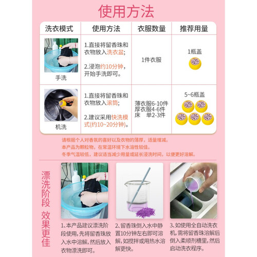 经典的清新淡香水味道,融合了随性和甜美的感觉,既有花香和果香,也有魅惑性感的气质。留香珠可在手洗或机洗模式下使用。