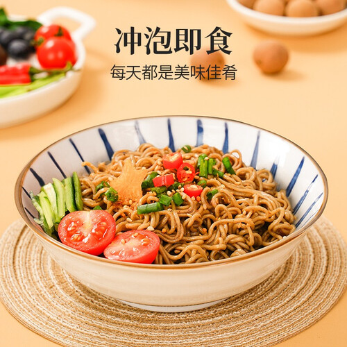 荞麦面中不含有脂肪,可以减少摄入,降低热量的负担。优选的黑全麦粉和荞麦粉,配比很适宜,令口感和营养都比较丰富。