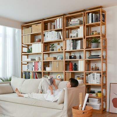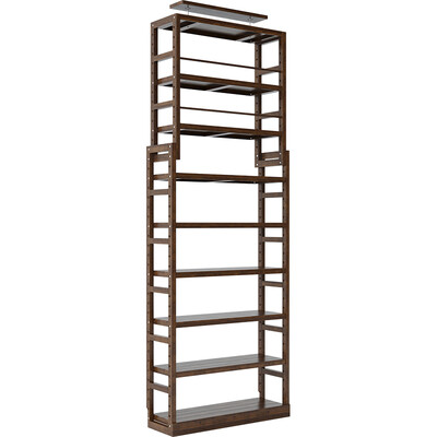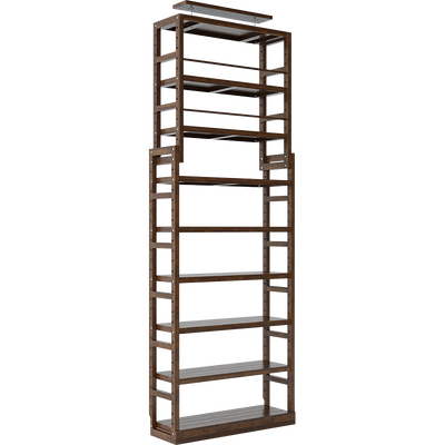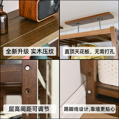 在书架的顶部设计了螺旋的拧杆,可长可短,能够让板子直接顶在天花板上,从而帮助固定书架位置,避免倾斜翻倒。