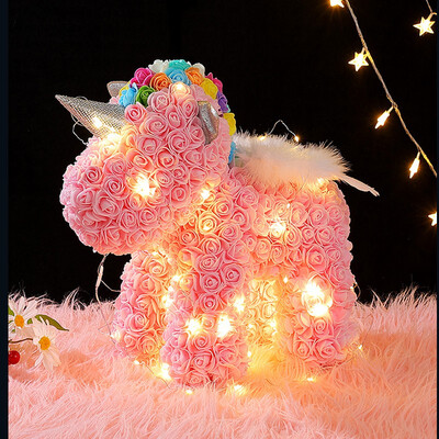 梦幻天使之翼独角兽造型,美轮美奂的视觉体验,十分的浪漫吸睛。精美的灯串进行装饰,可以散发亮丽灯光,营造温馨氛围。