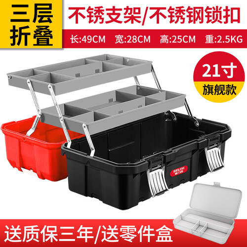具备加厚不锈钢锁扣,结实耐用,长久使用不损坏。采用三层折叠设计,提供更大的收纳空间,存放物品更方便。