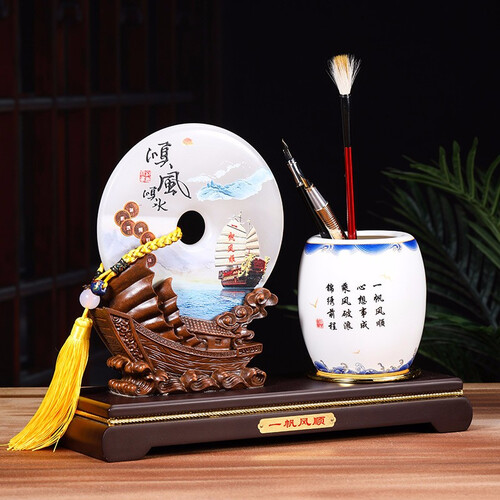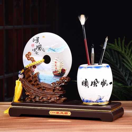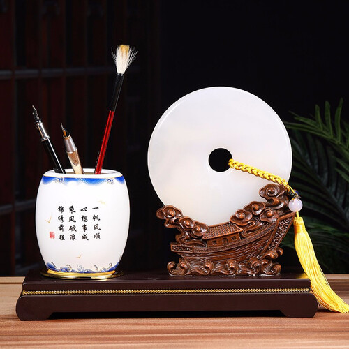 玉石材质看起来十分华贵,时刻散发着典雅的气质,独具东方美感。同时还能作为笔筒使用,古典造型更能衬托出主人的风雅。