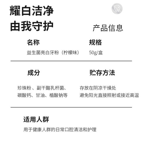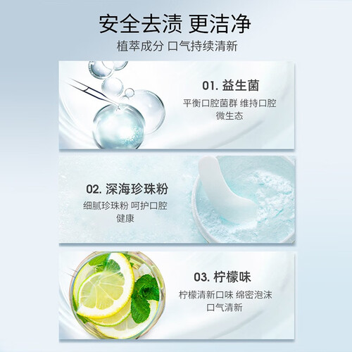 特别添加了珍珠粉,能将细微深处的牙渍一一溶解,令牙齿白亮光洁。清新的柠檬香味,持久停留于口腔中。