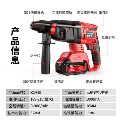 欧莱德 无刷便携式充电电锤