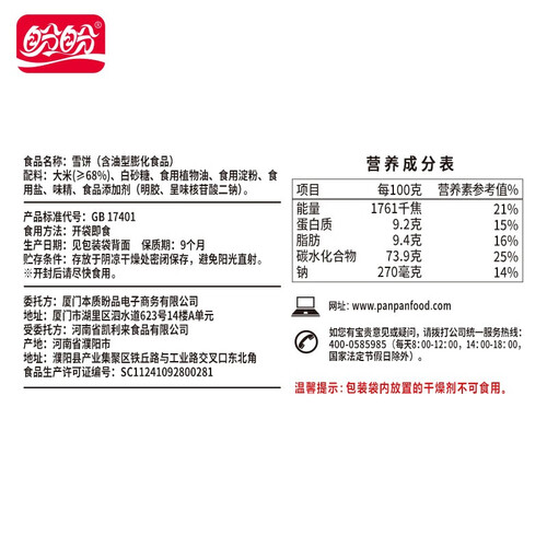 选用东北大米,精心烘烤而成,米香自然细腻,好吃美味。口感清脆,带着丝丝甜味,让人欲罢不能。