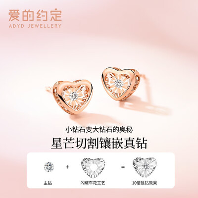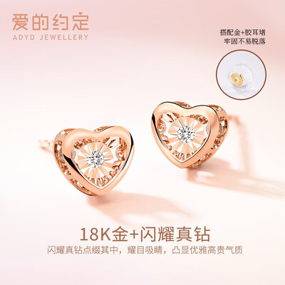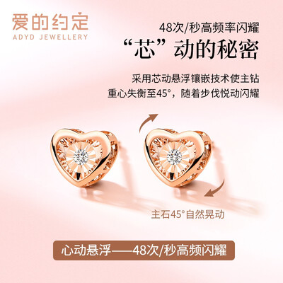 甜蜜爱心造型,镶嵌闪亮小钻石,阳光下能折射出迷人的光泽,闪耀又吸睛。款式经典,佩戴后很减龄。