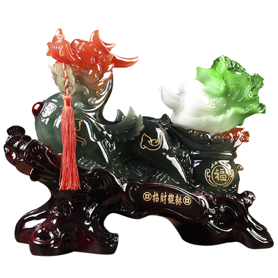 可以摆放在家中客厅、书房、店铺及办公室里,彰显美观大气风范。同时具有白菜与貔貅造型,寓意着百业俱兴、充满生机。