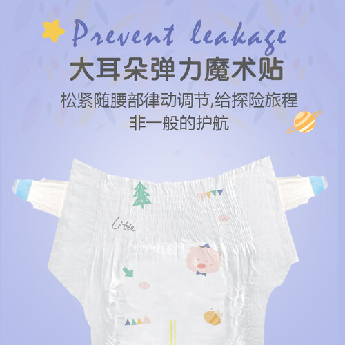 采用大耳朵弹力魔术贴,方便日常穿脱,并且松紧度可调节,使用更舒心。海量吸收因子,实现瞬间吸收尿液,无压力。