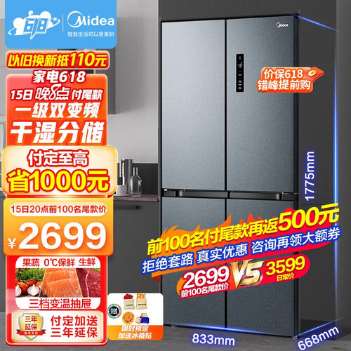 美的 中门软冷冻冰箱