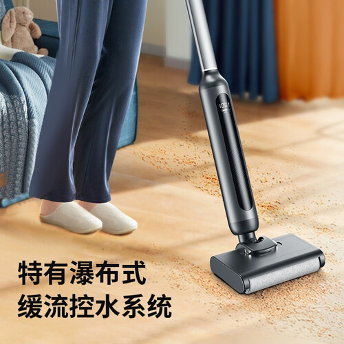 瀑布式缓流控水系统,出水均匀,有效防止出水过多造成水渍横流,让地面更清爽。滚刷采用细小纤维制造,吸附性强,清洁效果强力。