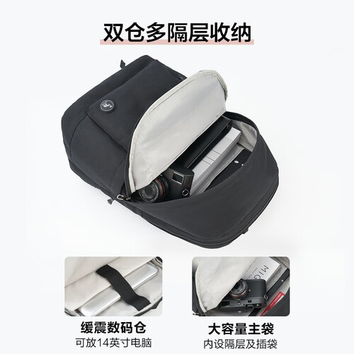 加厚防震的电脑插袋设计,能够给予笔记本电脑更贴心的守护。采用记忆棉肩带设计,承重性和减压性更为出众,背负不勒肩。