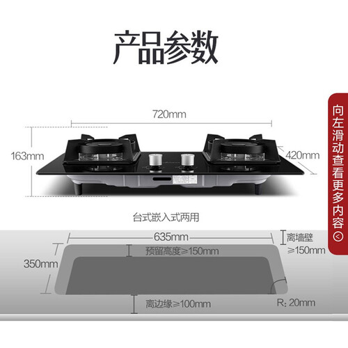 采用台嵌两用设计,适配不同尺寸台面,安装更轻松灵活。烟机配备隐藏式LED灯,光线柔和不伤眼睛,照亮锅里美食。