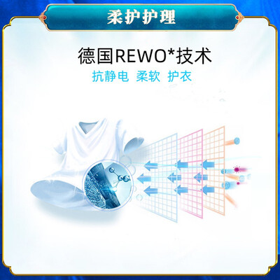 采用德国REWO的先进技术,可以抗静电,达到柔软护衣的效果。不含磷、铝、荧光增白剂的无添加配方,呵护健康更舒适。