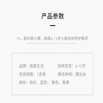 呆萌极简外观,时尚好看,深受孩子喜欢,让孩子爱上刷牙。柔细进口磨尖丝刷毛,帮助清洁牙齿,呵护口腔健康。