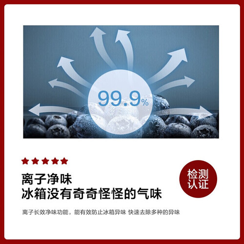 净味率高,有效时间内支持离子快速分解异味,全天长效维护冰箱空气清新。空间大且分储细致,合理存放避免串味,保持原鲜。