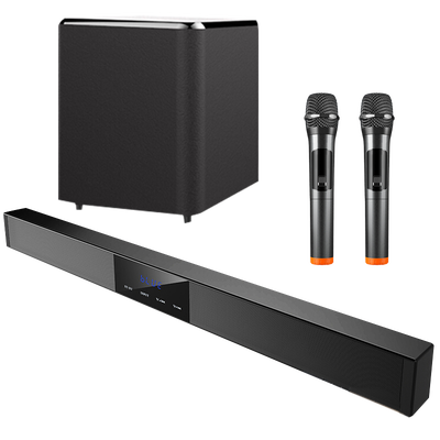 5.1环绕立体音效,带来影院级优质体验。搭配双U段无线话筒,让你随心自由哼唱。多种场景模式,给你不一样的震撼。