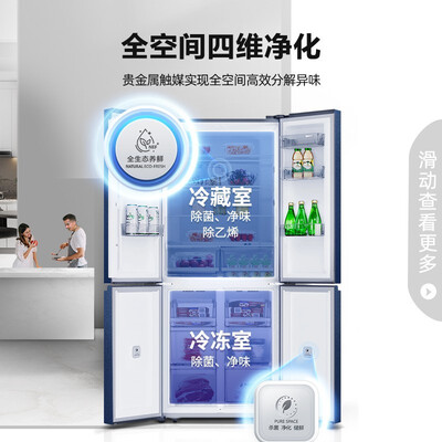 配备多层抑菌隔板,可自由移动调节,保鲜同时守护食物卫生。搭载贵金属触媒,高效分解异味净化空气,让食材健康保鲜。