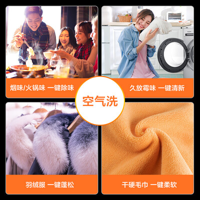 30分钟空气洗,能去除衣物火锅、烟酒味残留,加倍清新穿新衣。360度蒸汽焕新,适用于羽绒等蓬松衣物,还原衣物轻柔干爽。