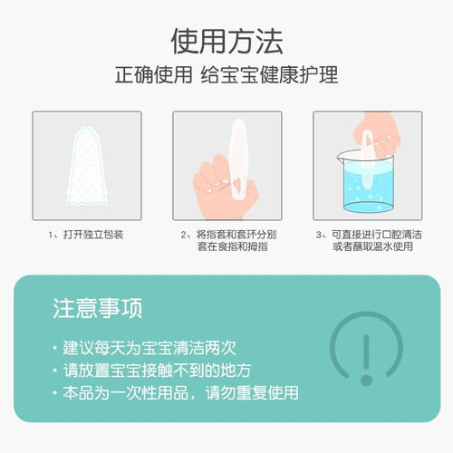 采用柔软亲肤珍珠棉制作,不会弄伤孩子口腔,提升孩子配合度。人体工程学指套设计,贴合手指,使用更加方便。