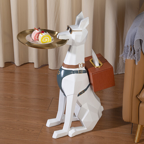 金属材质托盘,采用力学卡扣安装,提高承载力不易倒。酷酷的杜宾犬造型,背着实用纸抽盒,极大程度节省空间。