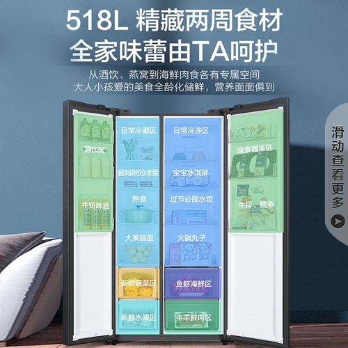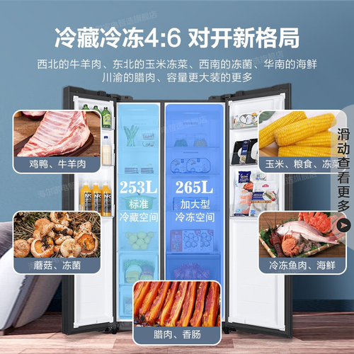 265L超大冷冻区,可存储六口之家的日常所需食物,无需反复添置。植萃净味除菌技术加持,呵护食材新鲜口感,保留原汁原味。