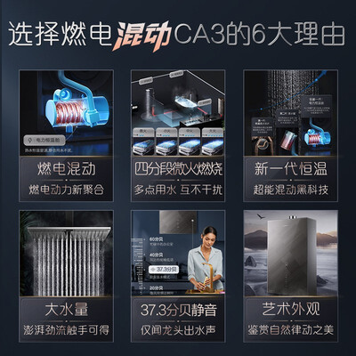 内置日本进口芯片,能够准确调节水气比例,有效减小水温波动,拒绝忽冷忽热。4分段燃烧技术,满足多处同时用水需求。