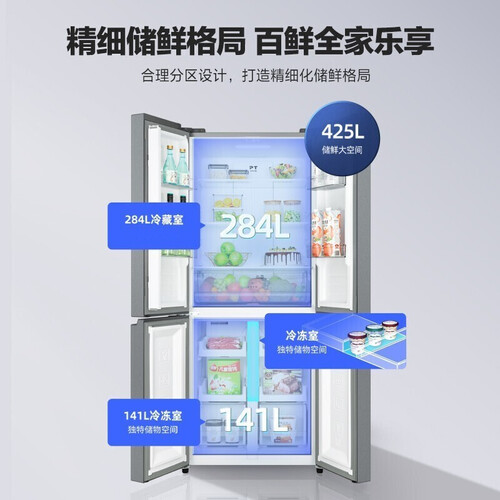 精细化的分储格局,果蔬、肉类、饮品等都能合理放置,不用担心串味。360度循环送风,快速制冷的同时又不会造成风干问题。