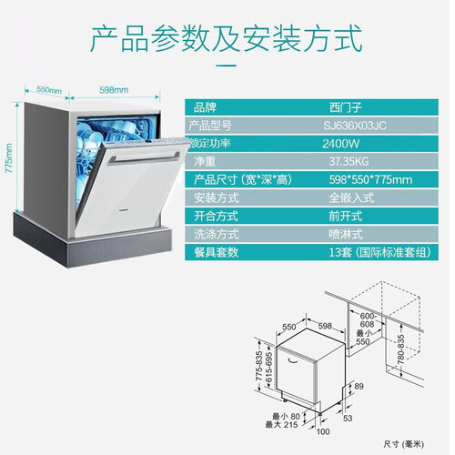 西门子 嵌入式洗碗机