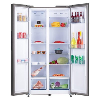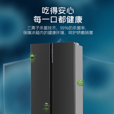 采用三离子净味装置,持久吸附冰箱内的异味,呵护食材健康。风冷双变频技术,避免冷气直吹,免食材结霜。