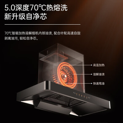 支持体感操控,无需触摸面板即可控制,彻底杜绝油污的粘黏。加宽加大风轮设计,吸力更强,排油更顺畅。