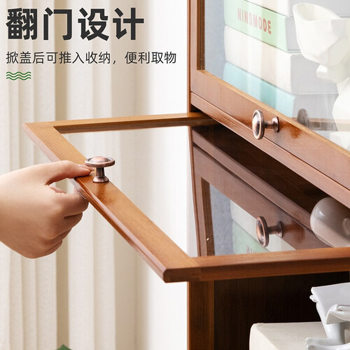 采用翻门设计,更加方便拿取物品,节省空间;背面采用封闭式复合板设计,更好的防止灰尘的侵袭,且具有防潮的作用。