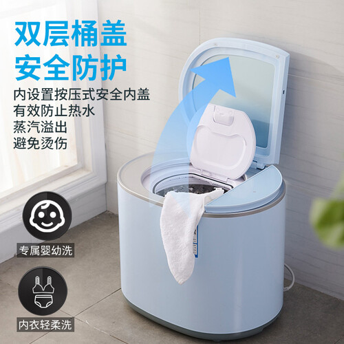 婴儿内衣裤专用洗衣机,把宝宝和大人衣物分开清洗,减少交叉污染。设计1.8kg黄金容量,一次能洗很多件。
