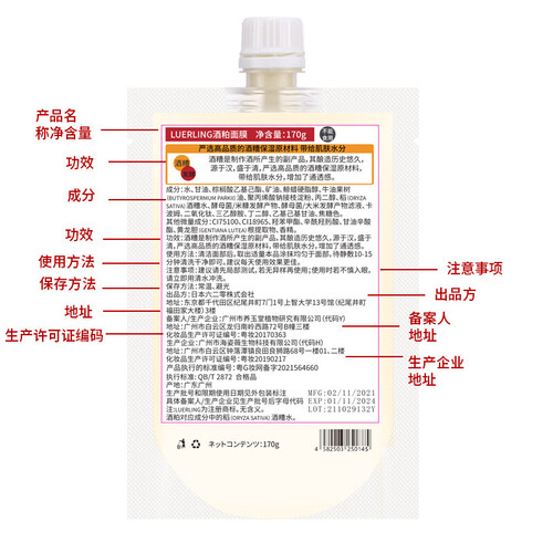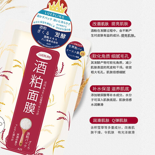 含酒糟提取精华成分,具有洁净和修护肌肤的作用,让肌肤变得干净清透,还具有改善角质层,软化粗糙角质,让肌肤变得细腻。