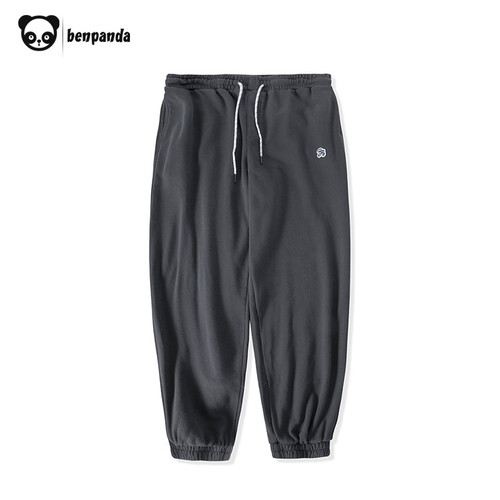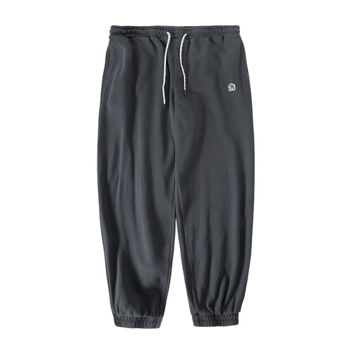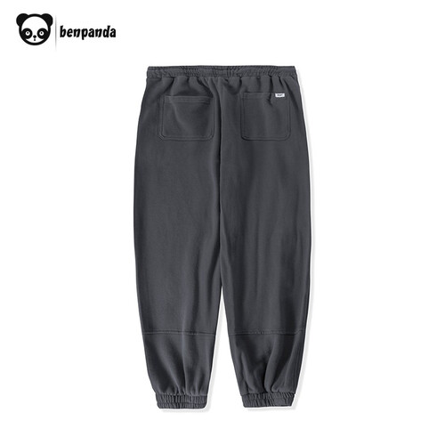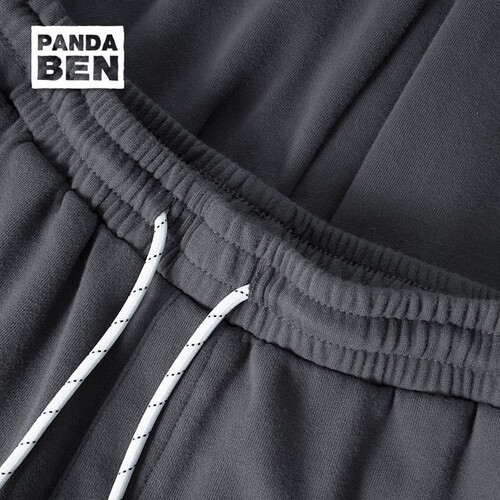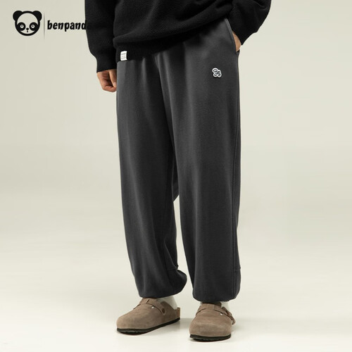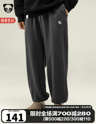 休闲裤采用优质卫衣面料,表面肌理细腻,内侧毛圈布保暖性能好,裤身有装饰性分割线迹设计,赋予别样美感,刺绣小标简洁吸睛,强调品牌感。